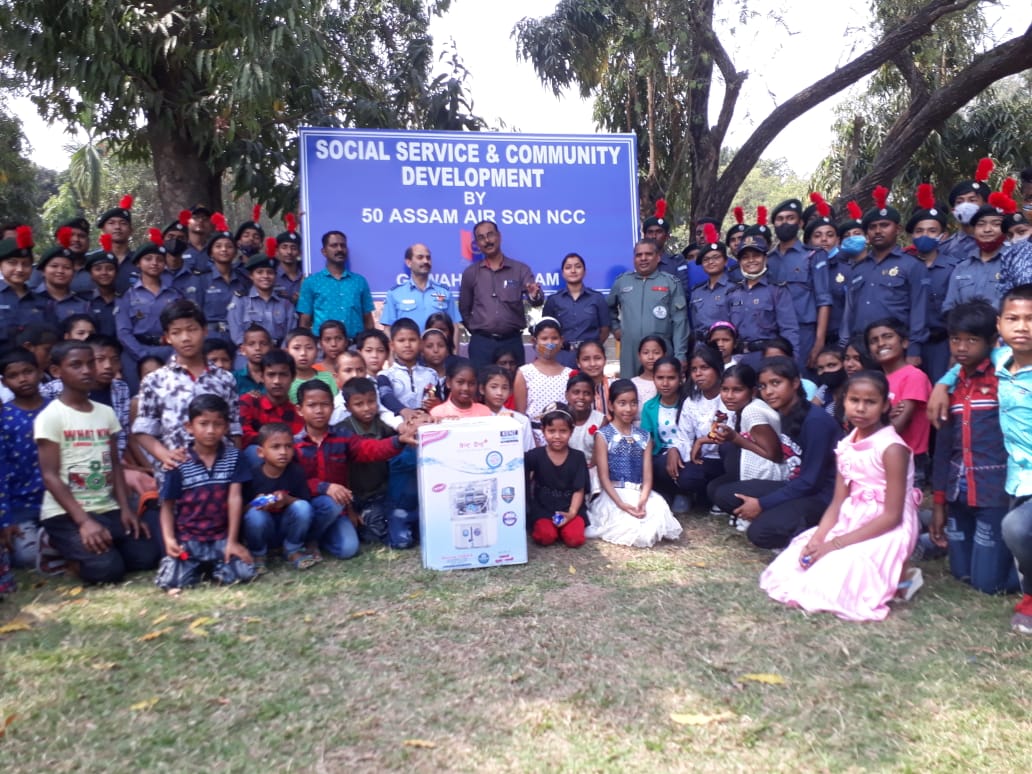 ৰাষ্ট্ৰীয় শিক্ষাৰ্থী বাহিনী চমুকৈ এন চি চি ৰ বায়ু শাখাৰ গুৱাহাটীস্থিত ৫০ আসাম এয়াৰ স্কুৱাদ্ৰোণ ফ্লায়িং এন চি চি ইউনিটৰ কেডেট সকলে বাহিনীটোৰ সামাজিক দায়বদ্ধতা আঁচনিৰ অংশহিচাপে আজি গুৱাহাটীৰ পশ্চিম প্ৰান্তৰ আজাৰা মিৰ্জাপুৰস্থিত এছ অ এছ শিশুগ্রামত শিশু সকলৰ খোৱাপানী বিশুদ্ধকৰণৰ বাবে একুৱা গাৰ্ড আৰু গৰমত সকাহ দিয়াৰ বাবে দুখন চিলিং ফেন বিতৰণ কৰে । বিতৰণ অনুষ্ঠানত ৫০ আসাম এয়াৰ স্কুৱাদ্ৰোণ ফ্লায়িং এন চি চি ইউনিটৰ কমাণ্ডিং অফিচাৰ গ্ৰুপ কেপ্তেইন ৰাজীৱ বিষ্ণয় , জুনিয়ৰ ৱাৰেণ্ট অফিচাৰদ্বয় জয় কৃষ্ণা আৰু চি আৰ আজেশ , এ এম আই পুষ্পন্দ্ৰ বৰকটকী , চেণ্ট ক্লাৰেট স্কুলৰ এ এন অ অৰ্চনা দাস , এছ অ এছ শিশুগ্রামৰ সঞ্চালক সুবোধ দাস উপস্থিত থাকে । আনহাতে এন চি চি ৰ বিষয়া আৰু কেডেটৰ দলটোৱে শিশুগ্রামৰ শিশু সকলৰ গৃহ পৰিদৰ্শন কৰি তেওঁলোকৰ সৈতে মত বিনিময় কৰে ।