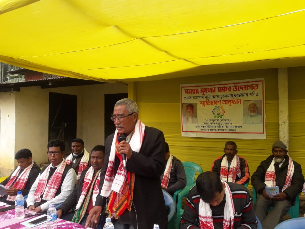 কামৰূপ জিলাৰ পলাশবাৰী বিধান সভা সমষ্টিৰ অন্তৰ্গত বৰদুৱাৰ বাগানত ১৭ জানুৱাৰীত সদ্যপ্ৰয়াত বিষ্ণুৰাভাৰ সংগ্ৰামী সতীৰ্থ সত্যনাথ ৰাভা আৰু অৱসৰপ্ৰাপ্ত শিক্ষক তথা সমাজকৰ্মী চুলেমান হুছেইনৰ স্মৃতিচাৰণ সভা এখনি অনুষ্ঠিত হৈ যায় ৷ সমন্বয় সুৰক্ষা মঞ্চৰ উদ্যোগত নতুন চিমিনা প্ৰাথমিক বিদ্যালয় প্ৰাঙ্গণত আজি শিল্পী দিৱসৰ পবিত্ৰ দিনটোতে আয়োজিত স্মৃতিচাৰণ সভাৰ কাৰ্যসূচী অনুসৰি পুৱা শিক্ষক ধীৰাজ ৰাভাই স্মৃতি তৰ্পন কৰাৰ উপৰি সুৰক্ষা মঞ্চৰ বিষয়ববীয়া সকলে পুস্পাঞ্জলী প্ৰদান কৰে ৷ আনহাতে, মঞ্চৰ বিষয়ববীয়া চাহজাহান আলী আৰু ৰাজু আলীয়ে আঁতধৰা সভাখনৰ আৰম্ভণিতে বিদেহ আত্মাৰ চিৰশান্তিৰ বাবে মৌন প্ৰাৰ্থনা কৰা হয় ৷ তদুপৰি বিশিষ্ট সাহিত্যিক ভুবিন ৰাভাৰ পৌৰহিত্যত আয়োজিত সভাখনত মঞ্চৰ বিষয়ববীয়া নুৰুল ইছলামে আদৰণি ভাষণ আগবঢ়াই ৷ ইফালে পবিত্ৰ স্মৃতিচাৰণ অনুষ্ঠানৰ স’তে সংগতি ৰাখি পৰমেশ্বৰ কলিতাৰ সম্পাদনাৰে প্ৰকাশ কৰি উলিওৱা পুস্তিকা ” নক্ষত্ৰ ” উন্মোচন কৰে বিশিষ্ট চিন্তাবিদ দেৱজিত নাফাই ৷ তদুপৰি তেওঁৰ উন্মোচনী ভাষণত কয় যে – সদ্যপ্ৰয়াত ৰাভা আৰু হুছেইন সমাজৰ আদিগংগা আছিল ৷ তদুপৰি মানৱপ্ৰেমৰ জৰিয়তে দুয়োগৰাকীয়ে সমাজৰ উত্তৰণৰ হেতু জীৱন সংগ্ৰাম আগুৱাই লৈ গৈছিল ৷ আনকি সভাখনত চানডুবি পৰিষদীয় সমষ্টিৰ সাধাৰণ সদস্য নৃপেন চন্দ্ৰ ৰাভা বিশিষ্ট অতিথি হিচাপে উপস্থিত থাকি সত্যনাথ ৰাভা আৰু চুলেমান হুছেইনৰ সামাজিক অৱদান সমূহৰ বিষয়ে সাৱলীল ব্যাখ্যা আগবঢ়াই ৷ প্ৰয়াত ৰাভা আৰু হুছেইনৰ পৰিয়ালৰ লোকৰ উপৰি বিশিষ্ট সমাজকৰ্মী বিতাৰাম দাস ,ৰমেন কুমাৰ দাস ,খলিল আলীৰ উপৰি গাম্ভীৰ্যপূৰ্ণ স্মৃতিচাৰণ সভাখনত স্থানীয় ৰাইজৰ মুৰব্বী সকলোৰ লগতে বৰদুৱাৰ ভোলাগাঁৱ আঞ্চলিক ৰাভা ছাত্ৰ সন্থাৰ সভাপতি কমলেশ্বৰ ৰাভা,বৰদুৱাৰ ভোলাগাঁৱ আঞ্চলিক আদিবাসী ছাত্ৰ সন্থাৰ সম্পাদক মাণিক উৰাঙকে ধৰি বিভিন্ন দল সংগঠনৰ ভালেকেইগৰাকীও বিশিষ্ট ব্যক্তি উপস্থিত আছিল ।