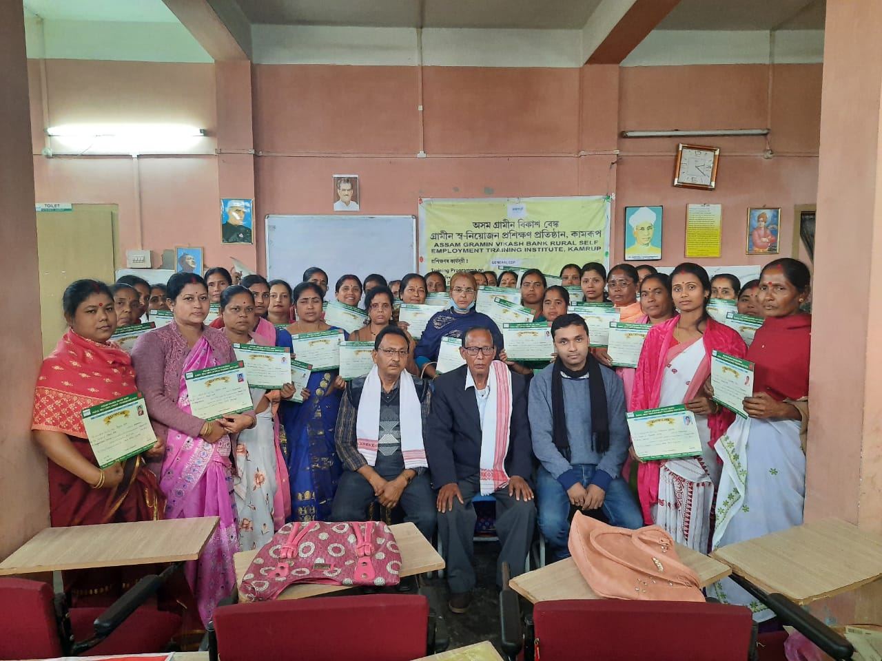 পলশাবাৰীৰ উপৰহালীস্থিত অসম গ্ৰামীণ বেংক গ্ৰামীণ স্ব-নিয়োজন প্ৰশিক্ষণ প্ৰতিষ্ঠানৰ ছয় দিনীয়া সাধাৰণ উদ্যোগীয় দক্ষতা বিকাশ প্ৰশিক্ষণৰ সফল সামৰণি পৰে। এই উপলক্ষে আয়োজন কৰা প্ৰমাণ পত্ৰ বিতৰণ অনুষ্ঠানটোৰ সঞ্চালনা কৰে প্ৰশিক্ষণ প্ৰতিষ্ঠানৰ সঞ্চালক দৰ্পন বৰাই। অনুষ্ঠানত মুখ্য অতিথি হিচাপে ই.পি.মিডিয়া ফ’ৰাম চাউথ কামৰূপৰ উপদেষ্টা বলেন কলিতাই উপস্থিত থাকি আৰছেটি কামৰূপে গ্ৰাম্যঞ্চলৰ যুৱক-যুৱতীসকলৰ বাবে আগবঢ়াই অহা বিনামূলীয়া প্ৰশিক্ষণৰ শলাগ লয়। প্ৰশিক্ষণ গ্ৰহণ কৰা মহিলাসকলে বেংক ঋণৰ জৰিয়তে আত্ম নিৰ্ভৰশীল হবলৈ পৰামৰ্শ আগবঢ়ায়। অনুষ্ঠানত অসম গ্ৰামীণ বিকাশ বেংক, উপৰহালী শাখাৰ পৰিচালক হৰি দাসে বেংকৰ নিয়মীয়া লেনদেন, গোটৰ ৰেজিষ্টেচন, লোণৰ বিষয়ত বিস্তৃত ব্যাখ্যা আগবঢ়ায়। যোৱা ৬ জানুৱাৰীৰ পৰা আৰম্ভ হোৱা প্ৰশিক্ষণটোত কামৰূপ জিলাৰ ৩৫ গৰাকী মহিলাই অংশ গ্ৰহণ কৰে। অনুষ্ঠানত উপৰহালী শাখাৰ পৰা আজি এটা আত্ম সহায়ক গোটক ১,০০,০০০.০০ টকা ঋণ আগবঢ়োৱা হয়। প্ৰশিক্ষণ লোৱা আটাইকেইটা আত্মসহায়ক গোটক পৰ্যায়ক্ৰমে অসম গ্ৰামীণ বিকাশ বেংক উপৰহালী আৰু কুকুৰমাৰা শাখাৰ পৰা ঋণ প্ৰদান কৰা হব বুলি সঞ্চালকে জানিবলৈ দিয়ে। অনুষ্ঠানটোৰ আঁতধৰে প্ৰশিক্ষণ প্ৰতিষ্ঠানটোৰ সহায়িকা পাৰিজাত সন্দকৈয়ে।