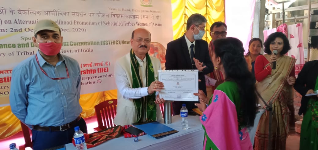 পশ্চিম গুৱাহাটীৰ ৰাণীৰ বাহুপাৰাত যোৱা ২ অক্টোবৰৰ পৰা ৩১ ডিচেম্বৰলৈ তিনিমহীয়া ভাৰত চৰকাৰৰ দ্বাৰা বিকল্প জীৱিকা পদ্ধতিৰ ওপৰত দক্ষতা বিকাশৰ এক প্ৰশিক্ষণ শিবিৰ অনুষ্ঠিত কৰা হয় । ভাৰত চৰকাৰৰ ৰাষ্ট্ৰীয় অনুসূচিত জনজাতি বিত্ত আৰু উন্নয়ন নিগম (এন.এছ. টি.এফ.ডি.চি) ৰ পৃষ্ঠাপোষকতাত আৰু ভাৰতীয় উদ্যমিতা প্ৰতিষ্ঠান (আই.আই.ই)য়ে ৰূপায়ণ কৰা এই কাৰ্যসূচীৰ সফল সামৰণি অনুষ্ঠান সম্পন্ন হয়। অনগ্ৰসৰ ঐতিহাসিক বৃহত্তৰ ৰাণী গ্ৰাম্যঞ্চলৰ ২৫ গৰাকী জনজাতি মহিলাক বিগত তিনিমাহে অভিজ্ঞতাপুষ্ট প্ৰশিক্ষকে অৰ্থনৈতিকভাৱে স্বাৱলম্বী কৰাৰ মুল উদ্দেশ্যেৰে আধুনিক কাৰিকৰী পদ্ধতিৰে এৰি, কপাহী কাপোৰ বোৱা আৰু বজাৰৰ চাহিদা পূৰণৰ বাবে সূতাৰ বাহিৰে আন সামগ্ৰী প্ৰস্তুতৰ ওপৰত প্ৰশিক্ষণ প্ৰদান কৰে। এই সামৰণি অনুষ্ঠানত মুখ্য অতিথি হিচাপে উপস্থিত থাকে ভাৰত চৰকাৰৰ জনজাতি কল্যাণ মন্ত্ৰ্যালয়ৰ এন.এছ.টি.এফ.ডি চিৰ. চি এম ডি অছিত গোপাল, পশ্চিম গুৱাহাটীৰ বিধায়ক ৰমেন্দ্ৰ নাৰায়াণ কলিতাৰ লগতে আই.আই. ইৰ সঞ্চালক ড° অভিজিৎ শৰ্মা, আই আই ই-এন এছ টি এফ ডি চি, আন্তঃগাথনি প্ৰদান কৰা জ্যোতি উদ্যোগ, প্ৰযুক্তি সংস্থা-আভা ফাউণ্ডেচনৰ অনু মণ্ডল, অৰূপ বৈশ্য, মুল প্ৰশিক্ষকসকল আৰু প্ৰকল্প অঞ্চলৰ হিতাধিকাৰীসকল । অনুষ্ঠানৰ মুখ্য অতিথি হিচাপে উপস্থিত থকা ভাৰত চৰকাৰৰ জনজাতি কল্যাণ মন্ত্ৰ্যালয় এন.এছ.টি.এফ.ডি.চিৰ.চি এম ডি অছিত গোপালে কয় যে উত্তৰ-পূৱ ভাৰতৰ শিল্প পৰম্পৰা কেৱল ৰুচি নহয়, এয়া বাণিজ্যিক উদ্যোগো নহয়, বৰঞ্চ ই হৈছে এই অঞ্চলৰ জীৱন আৰু পৰম্পৰাৰ এক অভিন্ন অংগ। জনজাতি মহিলাসকলক সফল উদ্যোমী হিচাপে গঢ়ি তোলাত এই কাৰ্যসূচীয়ে নিশ্চয় সহায় কৰিব বুলি মন্তব্য আগবঢ়ায়। অনুষ্ঠানত পশ্চিম গুৱাহাটীৰ বিধায়ক ৰমেন্দ্ৰ নাৰায়ণ কলিতাই ভাষণ প্ৰসঙ্গত ভাৰতবৰ্ষৰ ভিতৰত ৩৩% শিপিনী থকা ৰাজ্যৰ পশ্চিম গুৱাহাটীৰ ৰাণীৰ উদ্যমী এইসকল মহিলাৰ বাবে এই কাৰ্যসূচী ৰূপায়ণে যথেষ্ট লাভাৱান হোৱাৰ লগতে বিগত সময়ছোৱাত শিপিনীসকলক যথেষ্ট অনুদান প্ৰদান কৰাৰ লগতে পৰৱৰ্তী সময়ত এনেধৰণৰ কাৰ্যসূচীত সহায়-সহযোগিতা কৰিব বুলি বিধায়ক কলিতাই মন্তব্য কৰে। অনুষ্ঠানৰ শেষত প্ৰশিক্ষাৰ্থীসকলৰ মাজত একোখনকৈ প্ৰমাণ পত্ৰ বিতৰণ কৰা হয়।